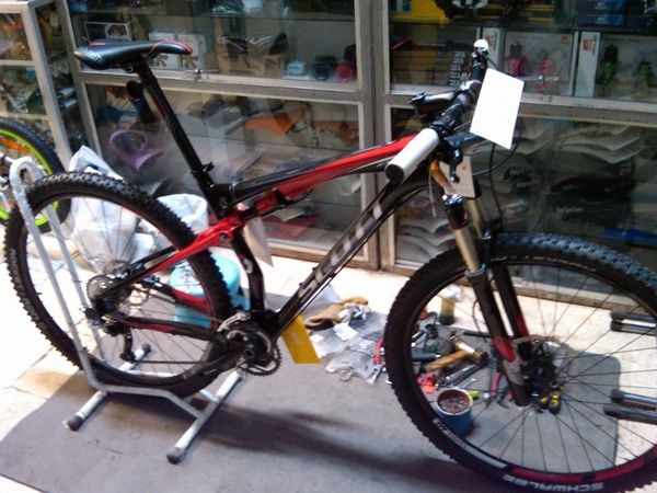 Harga Rp. 12.500.000,- The Spark 29 Comp is a full suspension aluminum 29er with Shimano drivetrain and brakes which is lightweight, durable, affordable and retains all the great geometry and ride of its carbon cousins. Frame: Spark 29 alloy 6061 Fork: Rock Shox XC 32 29 TK, lockout, 100mm Shock: X-Fusion E1 RL, Lockout, 100mm Group set: Shimano SLX / Alivio Brakes: Shimano BR-M446 disc brakes Cek Detail : http://www.scott-sports.com/global/en/products/221702/spark-29-co/